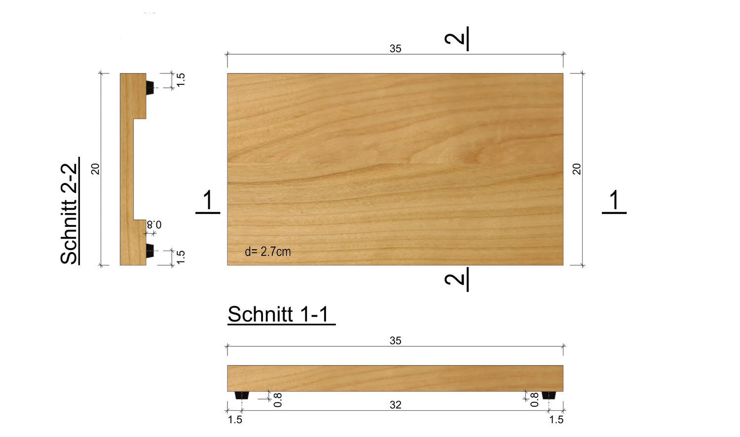 Schneidebrett 35cm x 20cm x 2.7cm Kirschbaum