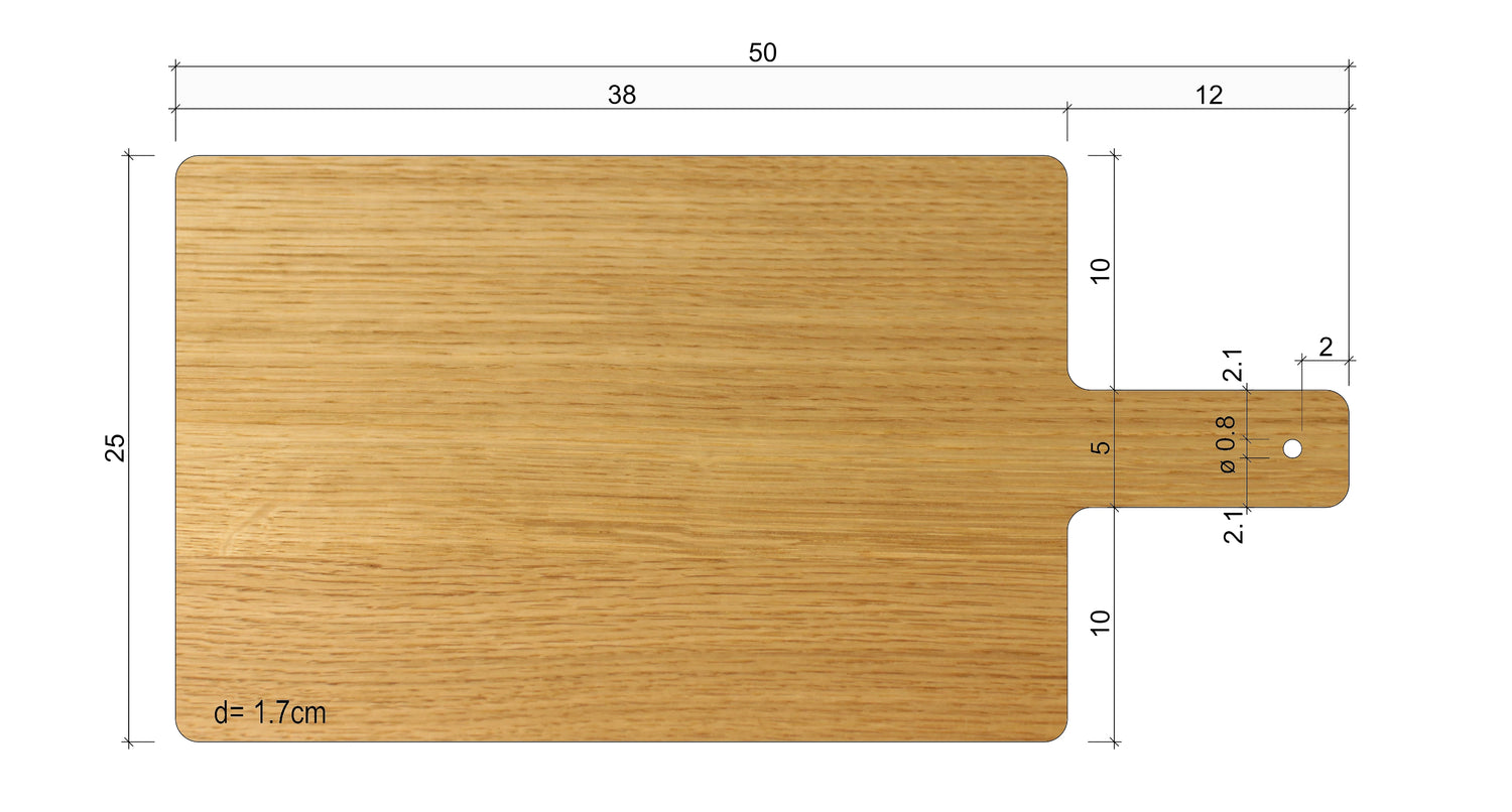 Schneidebrett 50cm x 25cm x 1.7cm mit Griff Eiche